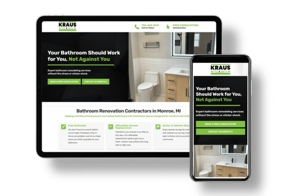 Kraus Remodeling, based in Monroe, Michigan, provides expert bathroom renovation services for homeowners throughout Monroe and its surrounding communities. The company specializes in full bathroom remodels, tub and shower replacements, accessible bathroom design, custom tile work, and two-day acrylic shower installs for those seeking a fast, affordable update. As a family-owned business with over a decade of bathroom-remodeling experience, Kraus Remodeling emphasizes honest communication, transparent pricing, and a customer-centered process that covers design, demolition, installation, and finishing touches. This page is a dedicated landing page that Superpath created for paid advertising campaigns to improve performance and increase conversion rates.