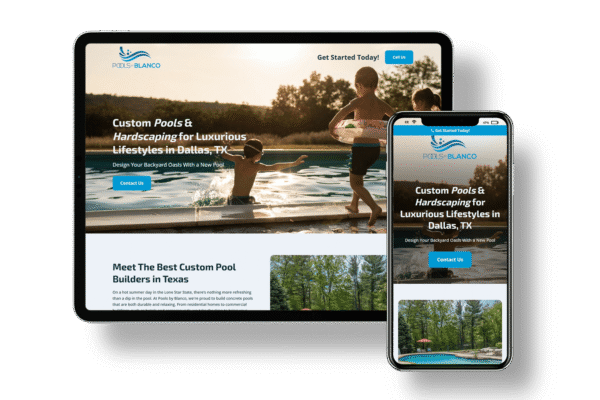 This landing page is a dedicated page Superpath created for Paid Advertising campaigns for this company to increase campaign performance and conversion rates. Pools by Blanco builds custom in‑ground concrete and gunite swimming pools along with full outdoor living spaces for homeowners in North Texas. They offer services including pool construction (freeform, geometric, freshwater or saltwater), hot tubs, hardscaping such as patios, walkways, outdoor kitchens, and fire pits, as well as ongoing maintenance, all designed to turn backyards into luxurious, personalized retreats.