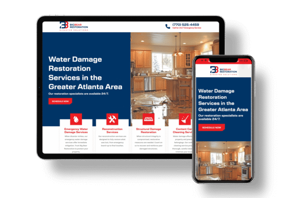 Big Bear Restoration, based in Marietta, Georgia, serves the Greater Atlanta area with full-service water damage restoration and property recovery services. The company offers 24/7 emergency response for water damage – from water removal and structural drying to dehumidification, thermal inspections, disinfection, and complete cleanup. They also provide reconstruction services to rebuild damaged structures, restore flooring, drywall, and other structural elements after water damage. This page is a dedicated landing page that Superpath created for paid advertising campaigns to improve performance and increase conversion rates.